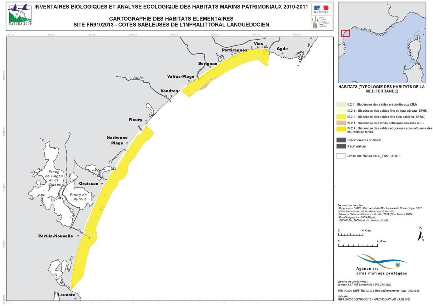 D’un point de vue écologique, ce site a pour objet d'inscrire dans le réseau Natura 2000 un patrimoine rare, spécifique et original d’un habitat d'intérêt communautaire actuellement peu représenté en Méditerranée française, les « Bancs de sable à faible couverture d'eau marine ». Cet habitat occupe plus de 98 % de la surface du site Natura 2000 avec notamment les habitats élémentaires « Sables Fins de Haut Niveau », « Sables Fins Bien Calibres » et « Sables Grossiers et fins graviers sous influence des Courants de Fond ». L’autre habitat présent sur le site Natura 2000 est les « Replats boueux et sableux exondés à marée basse » avec l’habitat « Sables Médiolittoraux » qui représente moins de 1 % de la surface du site Natura 2000.
