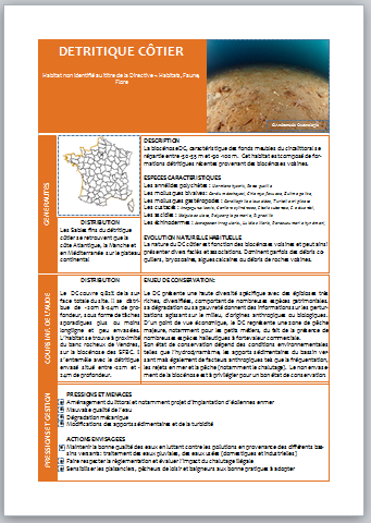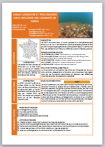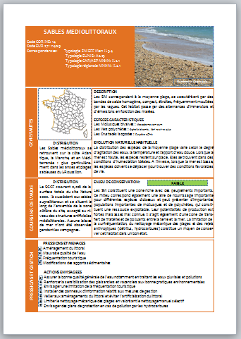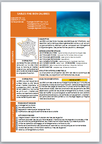 - Les bancs de sable à faible couverture permanente d’eau marine (Sables fins de haut niveau, Sables fins bien calibrées, Sables grossiers et fins graviers sous influence des courants de fonds ;