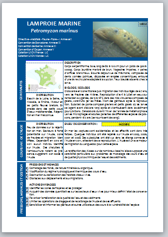 - Les espèces amphihalines (terrstre et marines) : la Lamproie marine et l'Alose feinte