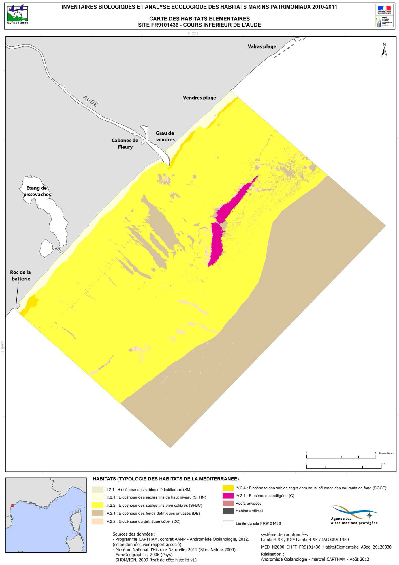 D’un point de vue écologique le site Natura 2000 Cours inférieur de l’Aude abrite de nombreuses espèces et habitats d’intérêt communautaire terrestres et marins tels que :