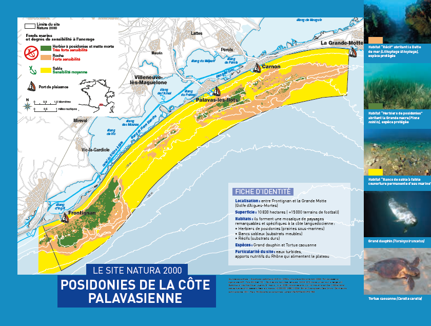 Dans une optique de mutualisation des moyens, les outils de communication développés par la Ville d’Agde ont été adaptés au contexte local (écologique et socio-économique) du site Natura 2000 « Posidonies de la côte palavasienne ».