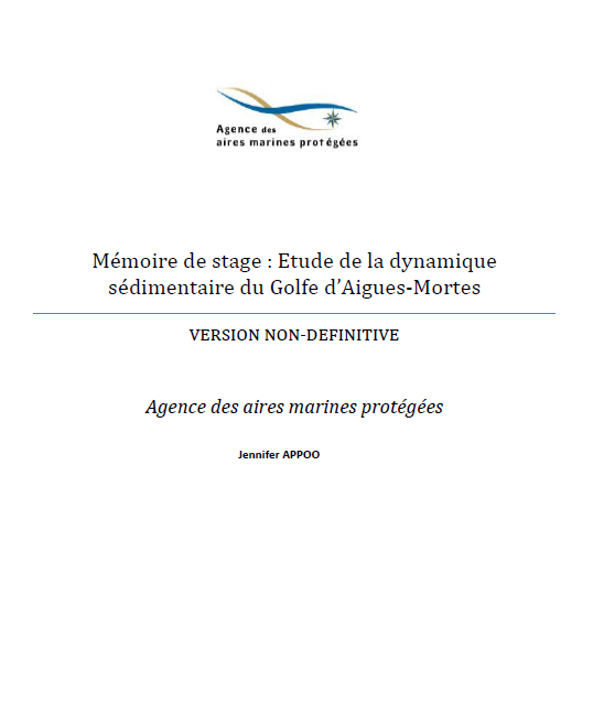 De mars à août 2014, une stagiaire a modélisé la dynamique sédimentaire du Golfe d’Aigues-Mortes en fonction des différentesconditions de vent (Tramontane, Mistral, Marin Sud-Est, Marin Sud-Ouest) et a élaboré la carte des points de prélèvements de substrat meuble pour l’étude complémentaire à mette en oeuvre.